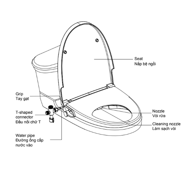 - Hai vòi phun tự làm sạch kết hợp vòi phun dành riêng cho nữ. Có chức năng rửa trước, rửa sau siêu sạch. Vòi rửa kết hợp bọt khí êm ái, không đau rát.